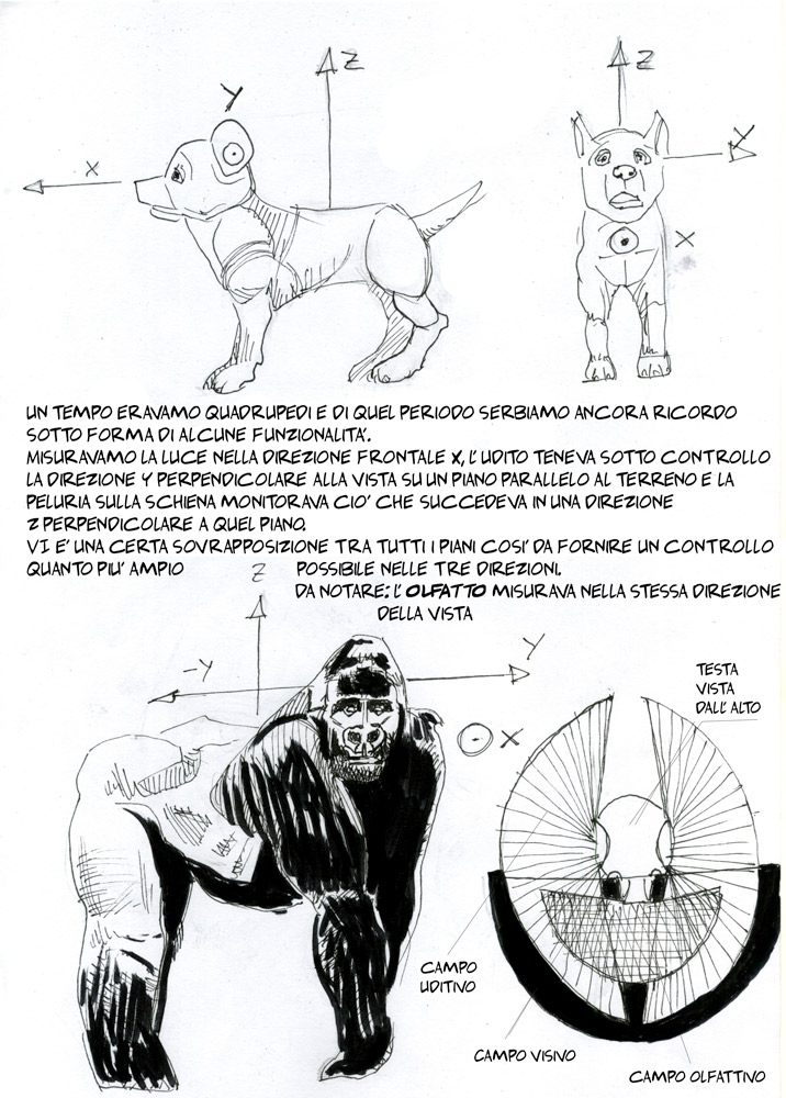Parlandole, ho scoperto che collabora da tempo con l’INAF e che conosce diverse persone con le quali anche io lavoro, in testa Stefano Sandrelli del POE di Brera, mio relatore di dottorato in Astrofisica. Esplosiva, sempre in viaggio alla ricerca di un’onnipresenza che le consenta di curare icome una chiocica i suoi progetti, ha fondato il sito Design of the Universe (10), un sito nel quale propone con forza l’esigenza di un dialogo sinestesico tra scienza e arte. A Firenze mi ha dato l’opportunità di parlare di molecole nello spazio, della loro origine, del loro possibile odore e di introdurre al pubblico lì convenuto e intrattenuto con musica, profumi, immagini, video, danza e discorsi di chimici, agronomi, artisti, astronomi (!), gli argomenti che ho esposto nell’ultimo fumetto di Squid Zoup (11) e che Beth mi ha chiesto giustamente di pubblicare solo ad evento finito.